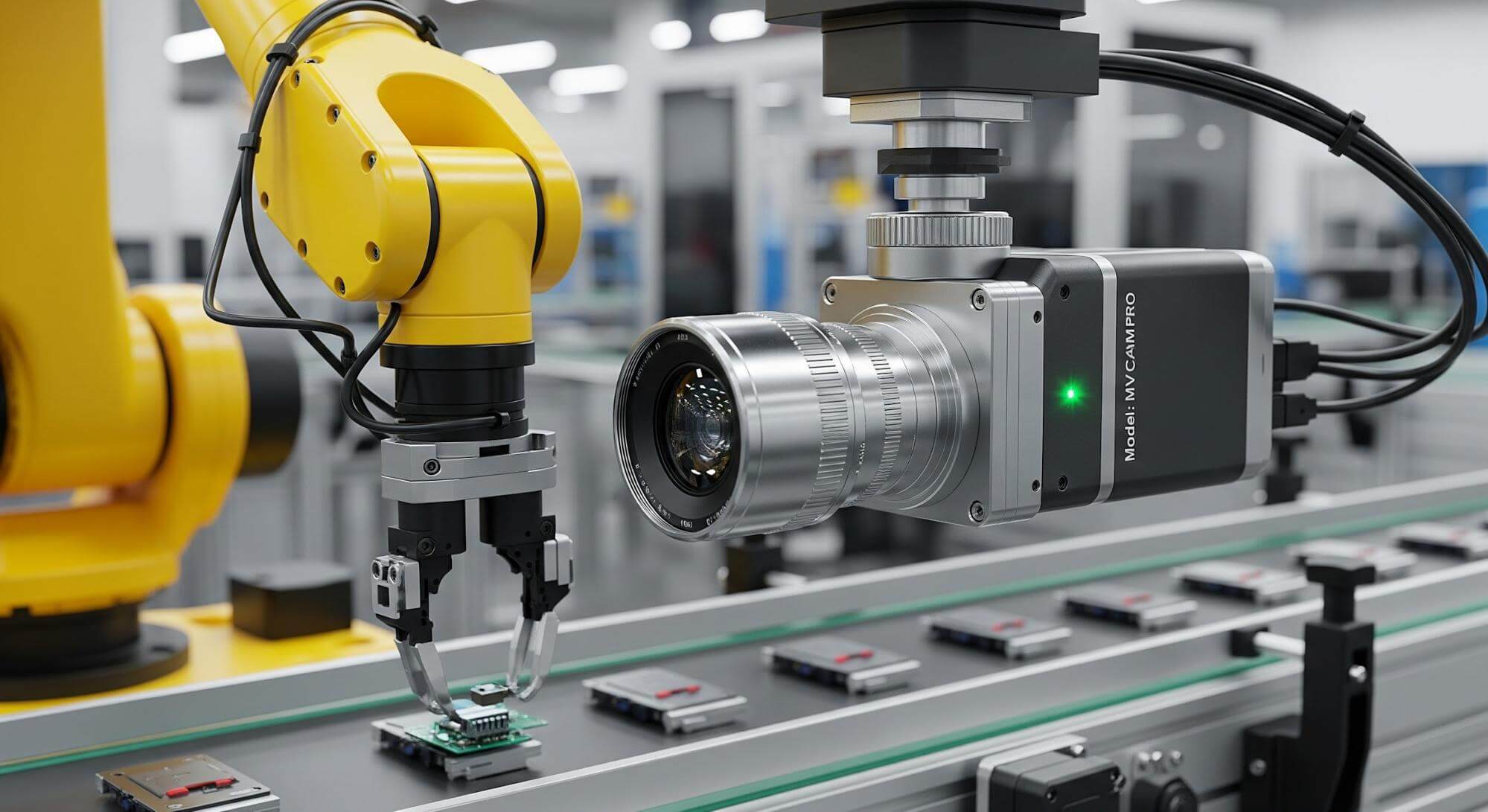 製造業のマシンビジョンでは、微細な電子基板や小さな部品の検査に適しています。