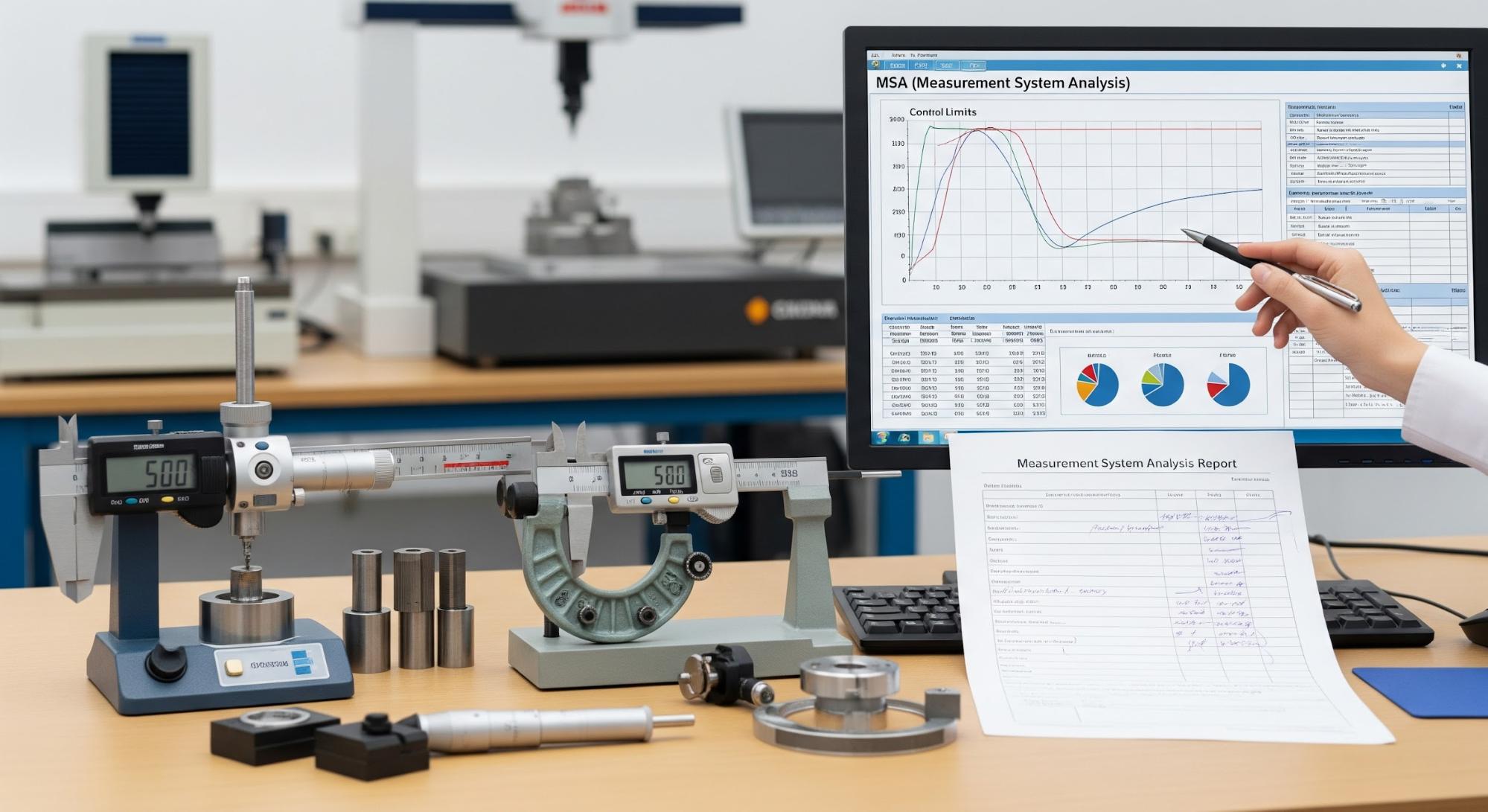 正確な測定データに基づいた判定を行うには、測定システムそのものの信頼性を評価することが欠かせません。そこで導入されている手法が「MSA(測定システム解析)」です。