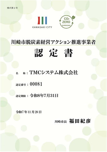当社は「川崎市脱炭素経営アクション推進事業者」の認定をうけました。