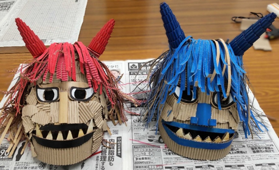 2024年1月、廃棄段ボールで作った鬼のお面を、近所の幼稚園に寄付しました。